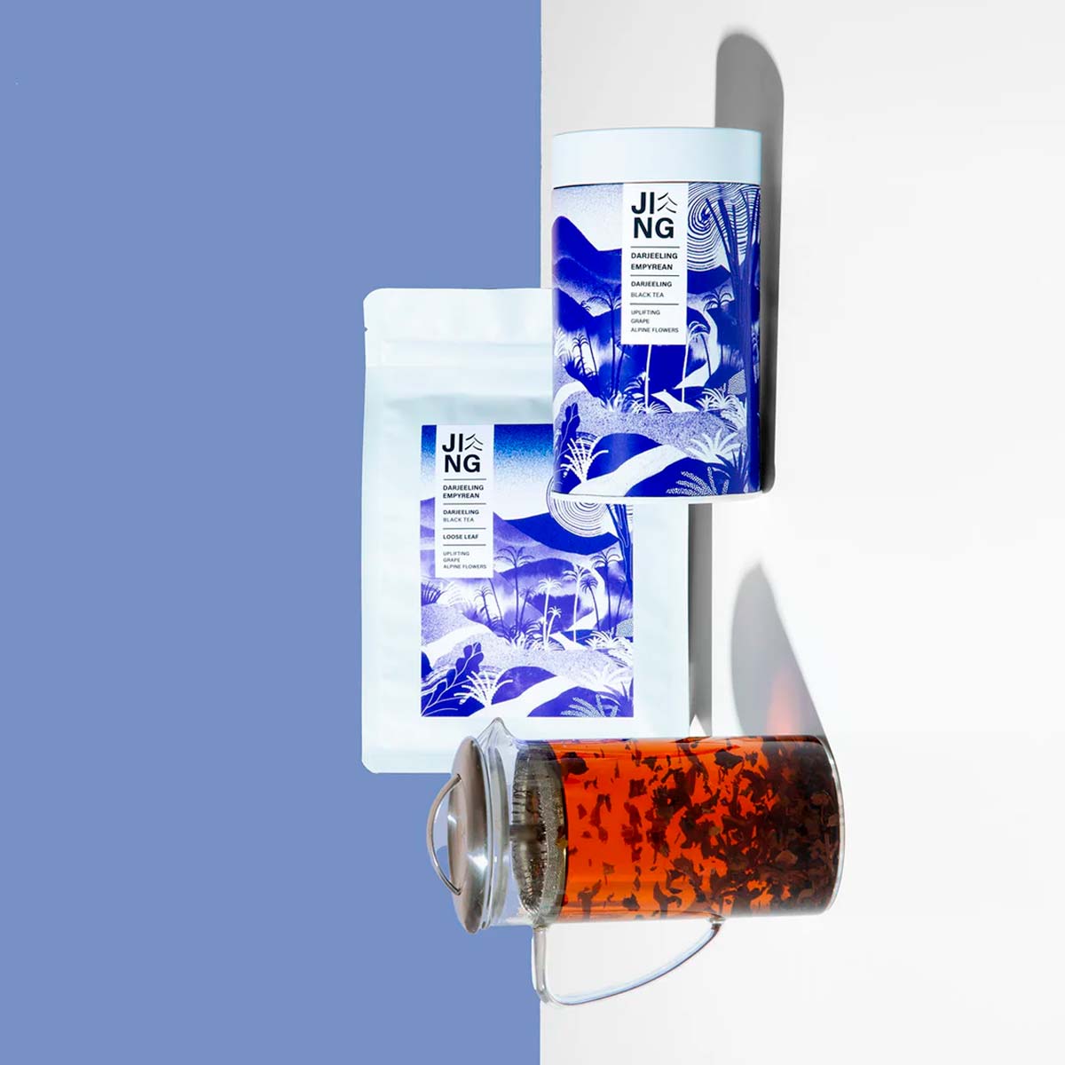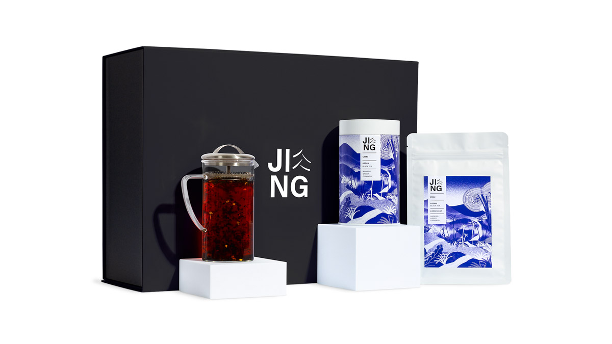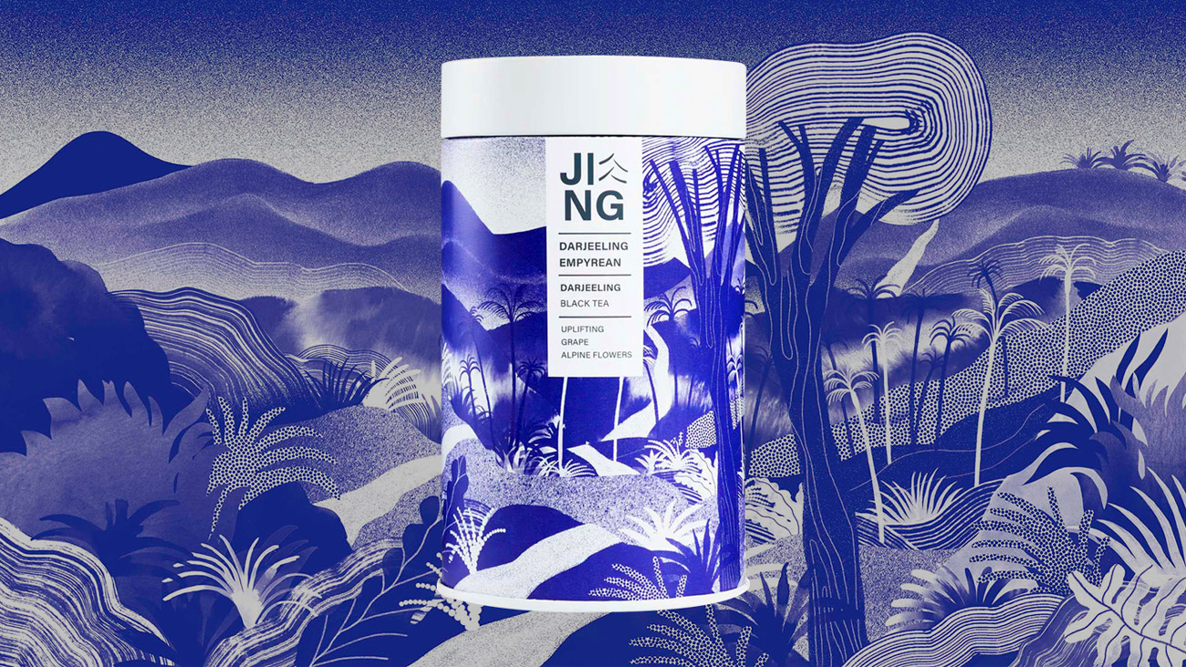 The illustrations reinforce Jing Tea’s premium, artisanal, and sustainability-led positioning.